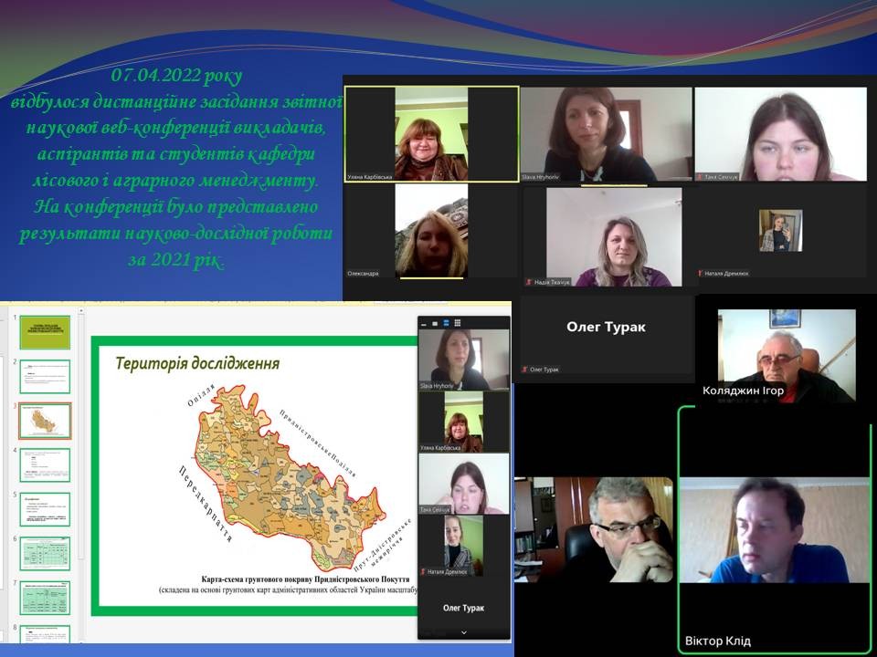 07.04.2022 р. відбулося дистанційне засідання звітної наукової конференції викладачів, аспірантів та студентів кафедри лісового і аграрного менеджменту, де були представлені результати науково-дослідної роботи за 2021 рік. Тематика наукових виступів: 1. Висотно-типологічні закономірності стійкості лісів Карпат. Доктор сільськогосподарських наук, професор В.С. Читати далі