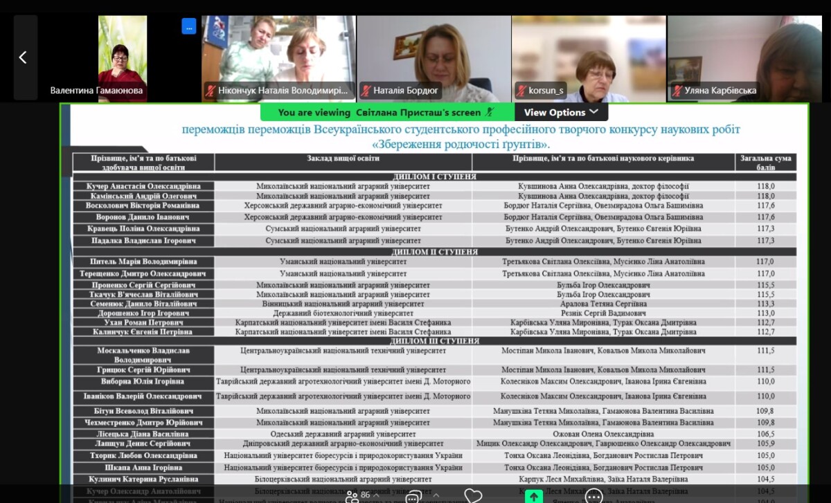 Здобувачі вищої освіти спеціальності Н1 Агрономія Роман Ухан та Євгенія Калинчук під керівництвом доктора сільськогосподарських наук, професора кафедри лісового і аграрного менеджменту Уляни Карбівської, викладача Оксани Турак посіли ІІ місце у Всеукраїнському студентському професійному творчому конкурсі наукових робіт «Збереження родючості ґрунтів».